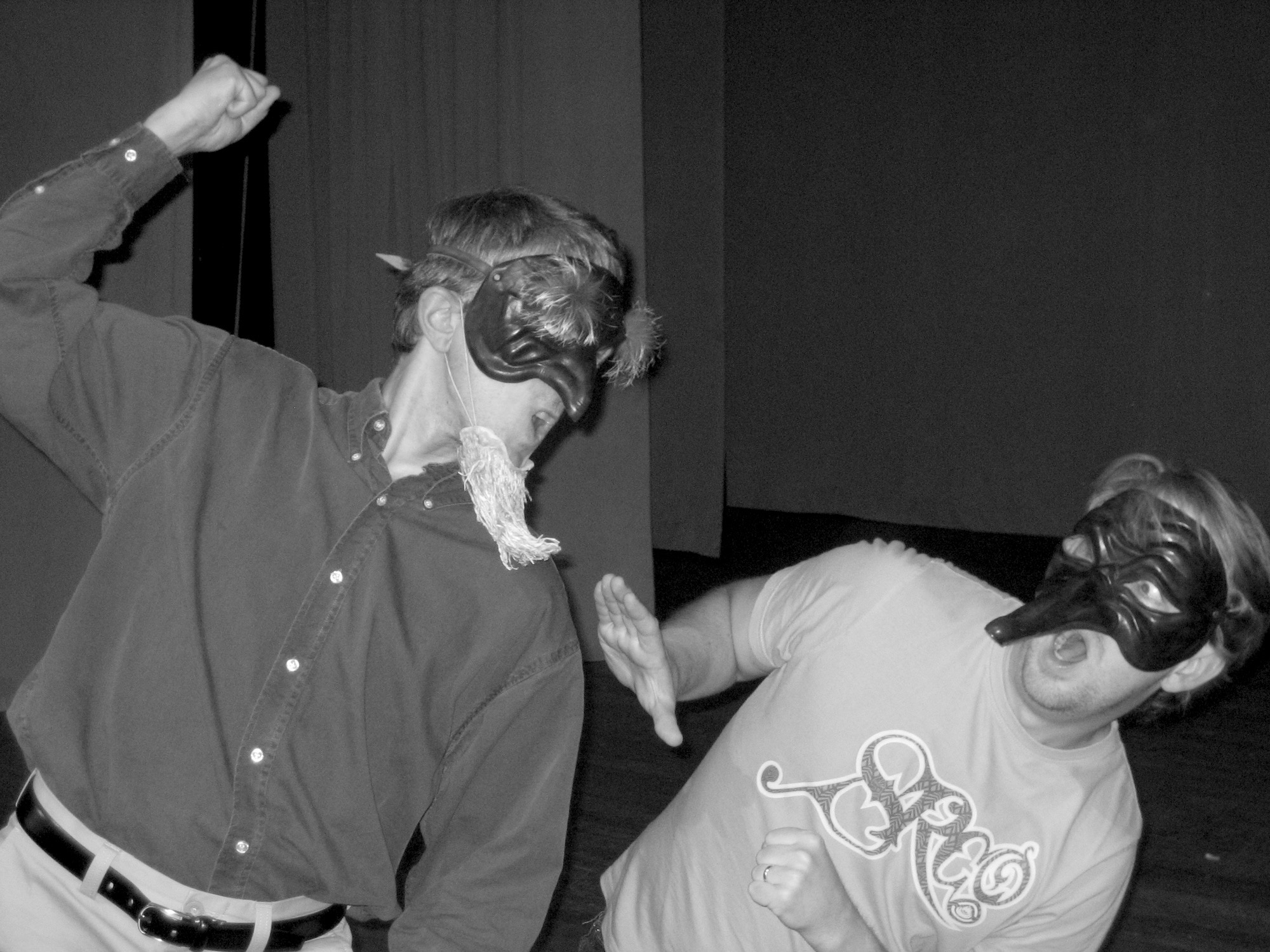 We were coached on mask use by the fabulous Toby Wilsher, founder of the UK’s top mask company. We initially used masks made for us by Doreen James-Parsons, which were wonderful. But in 2005 we bought a set of Venetian sixteenth-century copies from Ca’ Macana in Venice and these are nicer to wear!